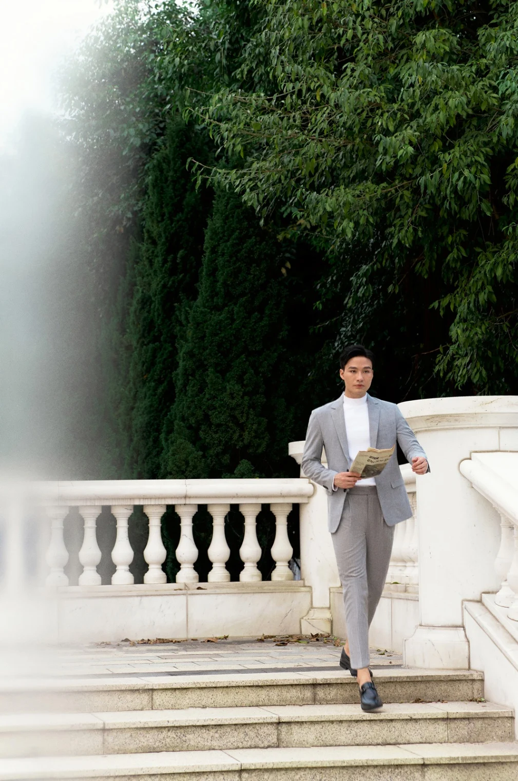 ►Áo Blazer Nam Thiết kế cổ bẻ vạt chéo tạo sự thanh lịch, sang trọng