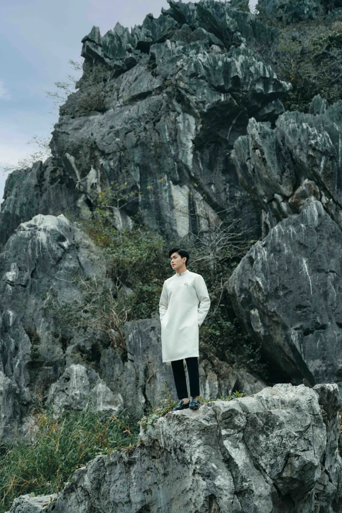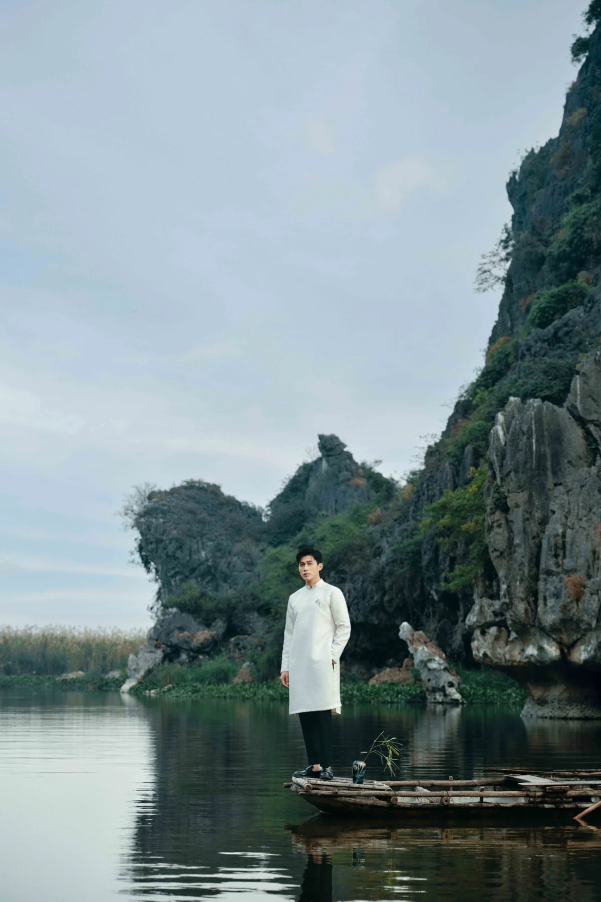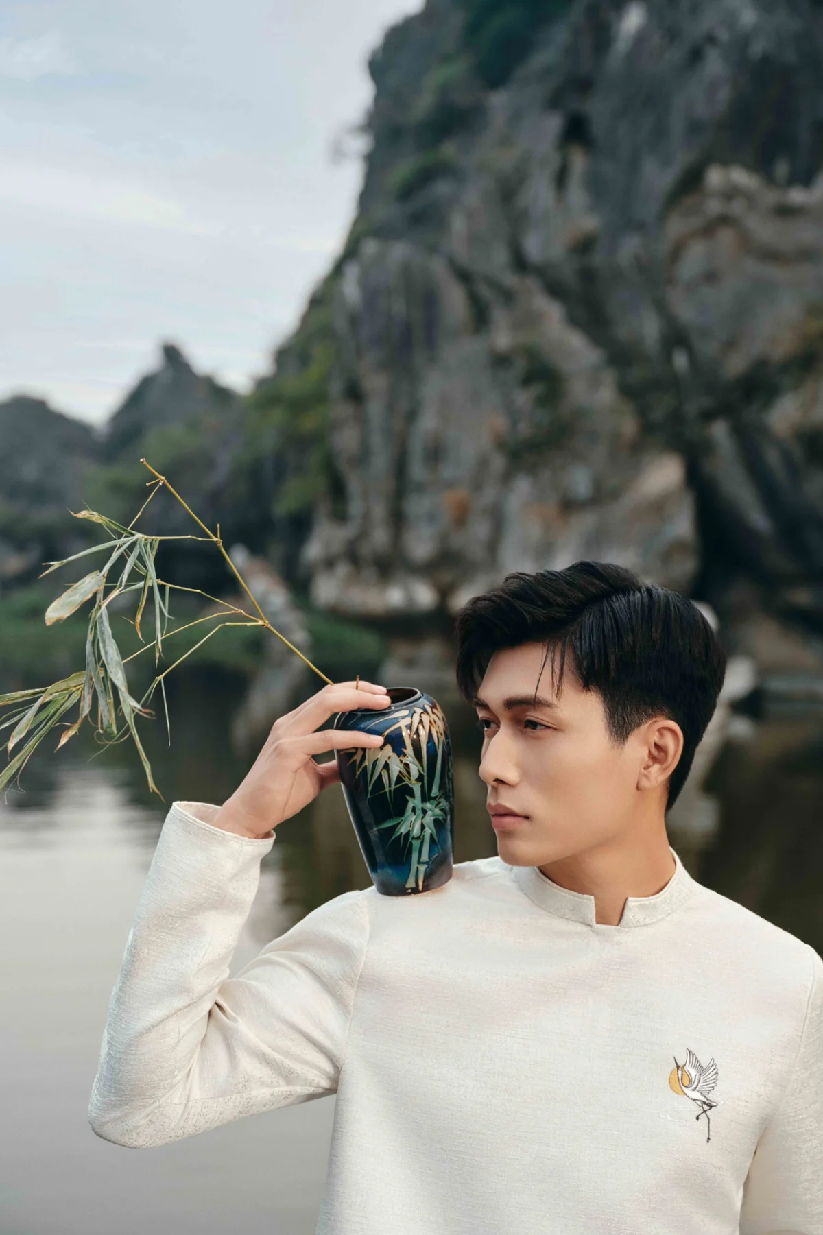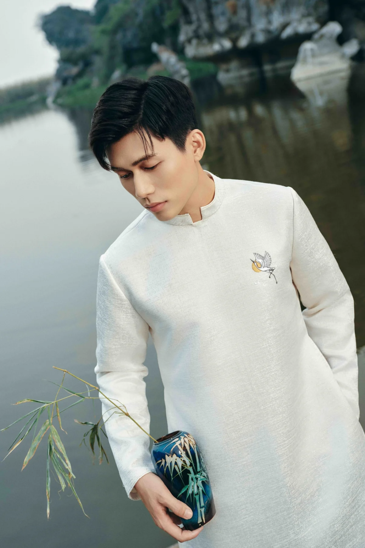 Hình ảnh cánh cò thêu trên ngực áo dài nam tượng trưng cho sức mạnh, sự kiên cường, bất khuất và khả năng vượt lên trên mọi thử thách. Qua đó truyền tải thông điệp về đức tính kiên cường, không bao giờ từ bỏ dù cuộc sống có khó khăn đến đâu, vẫn có thể vươn lên và thực hiện ước mơ.