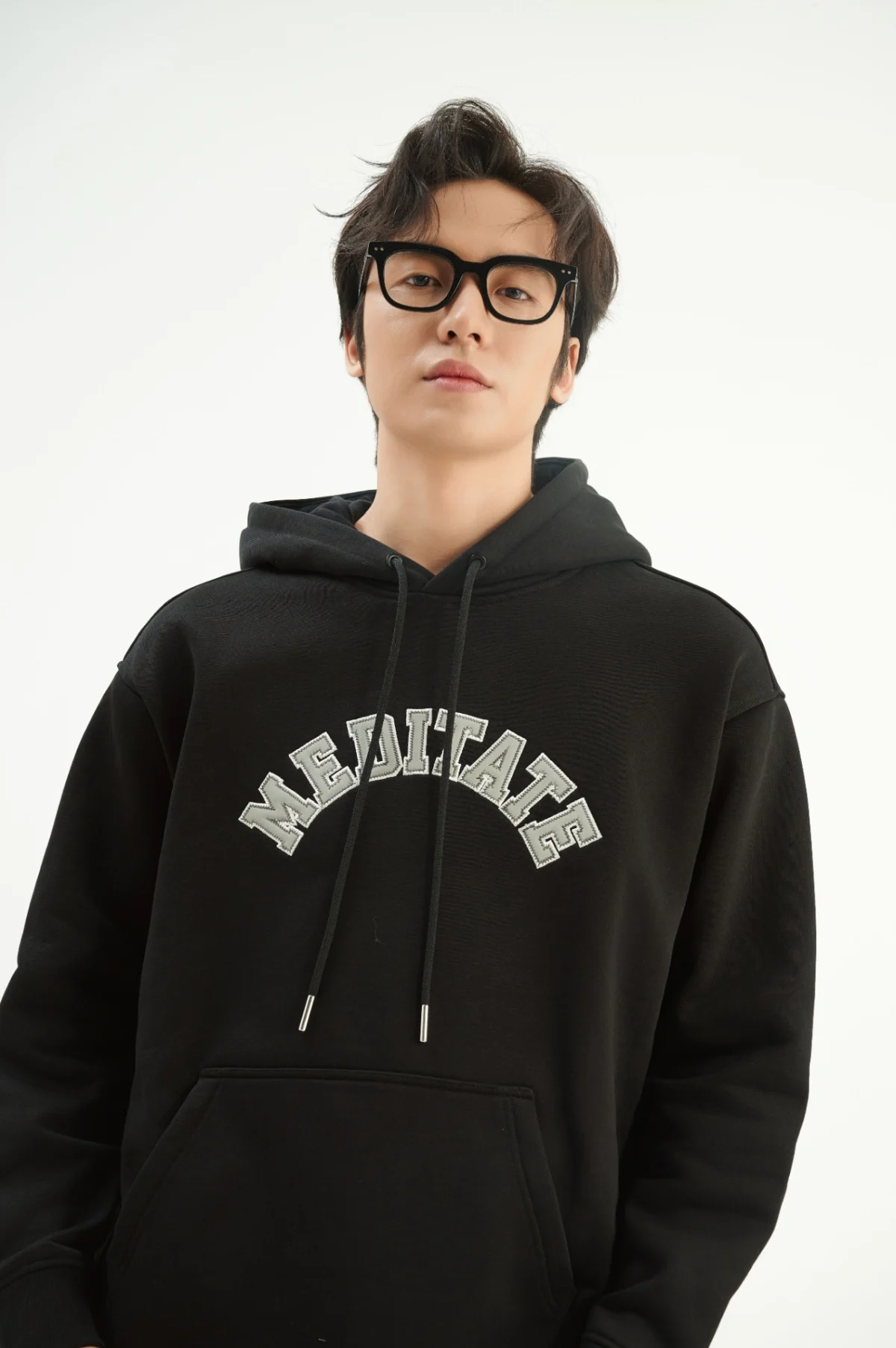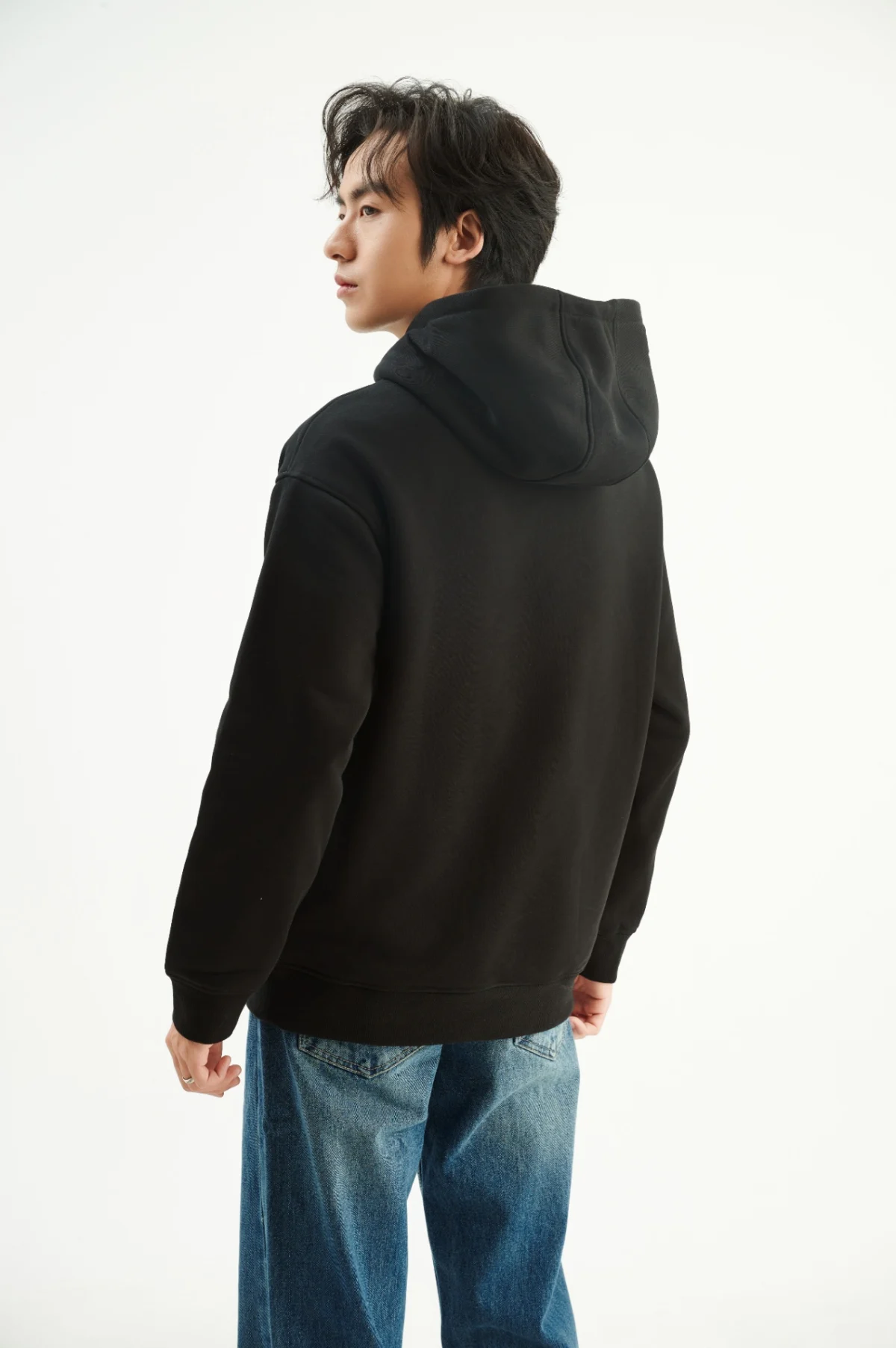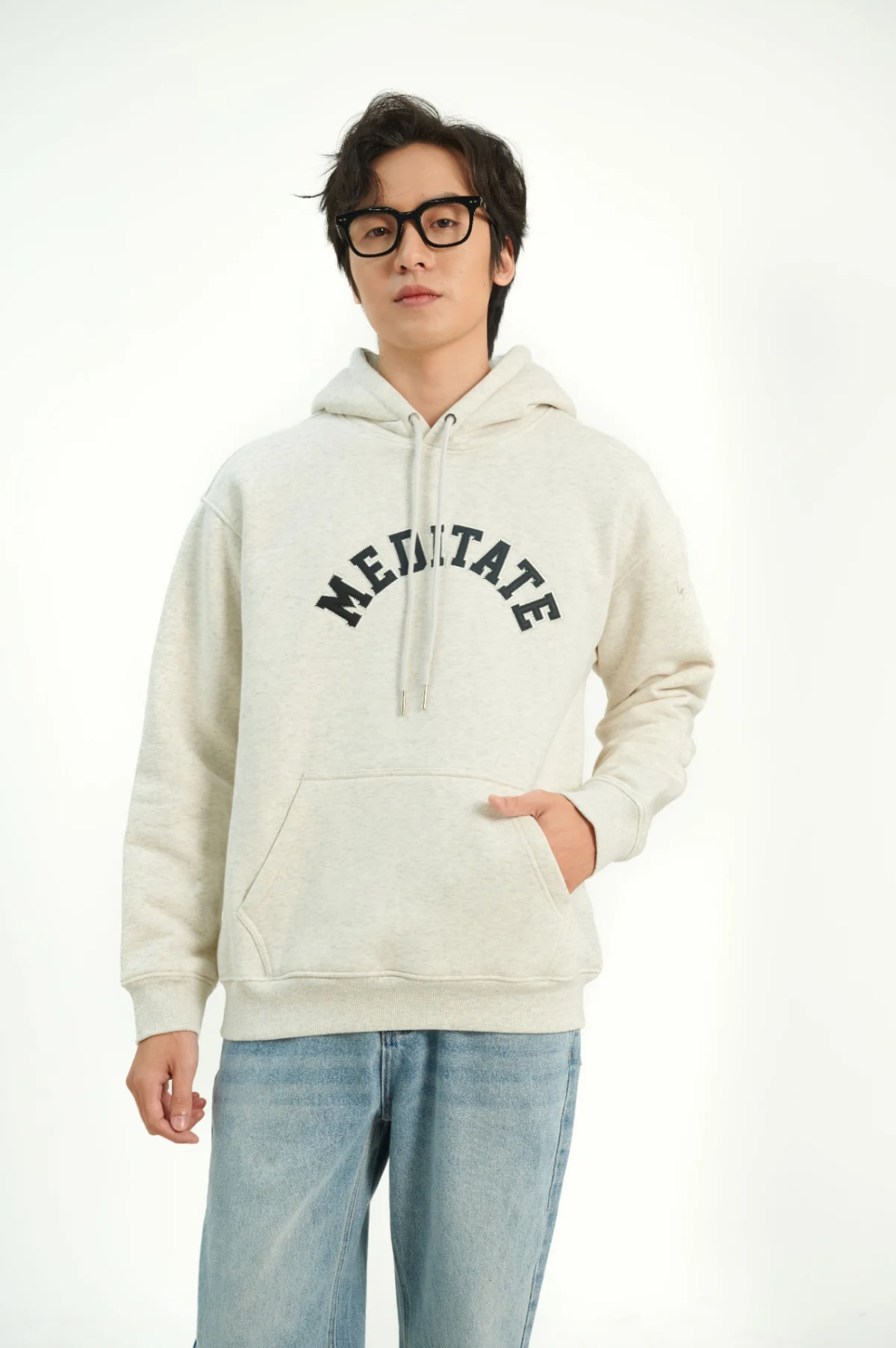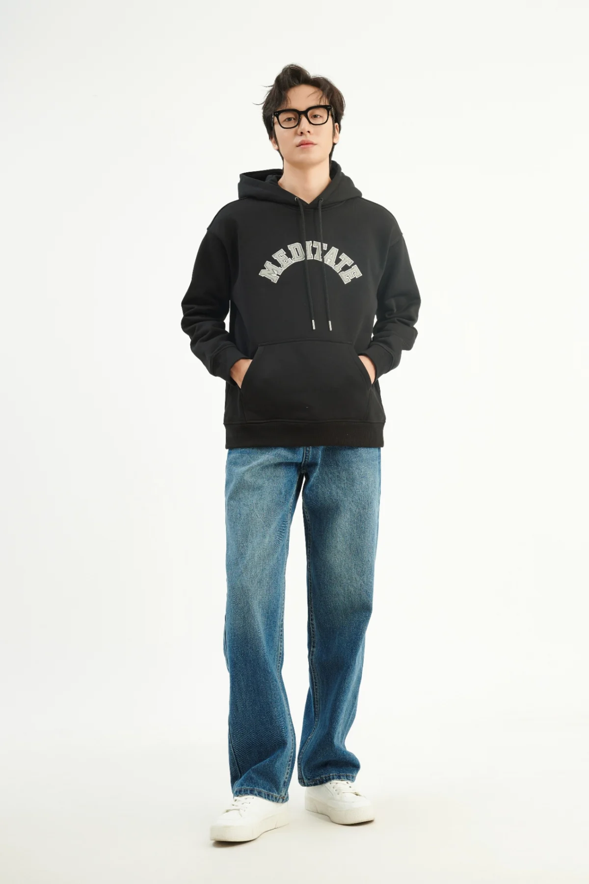 ►Thiết kế áo hoodie nam cổ tròn với form classic kết hợp hình thêu cong to giữa ngực .