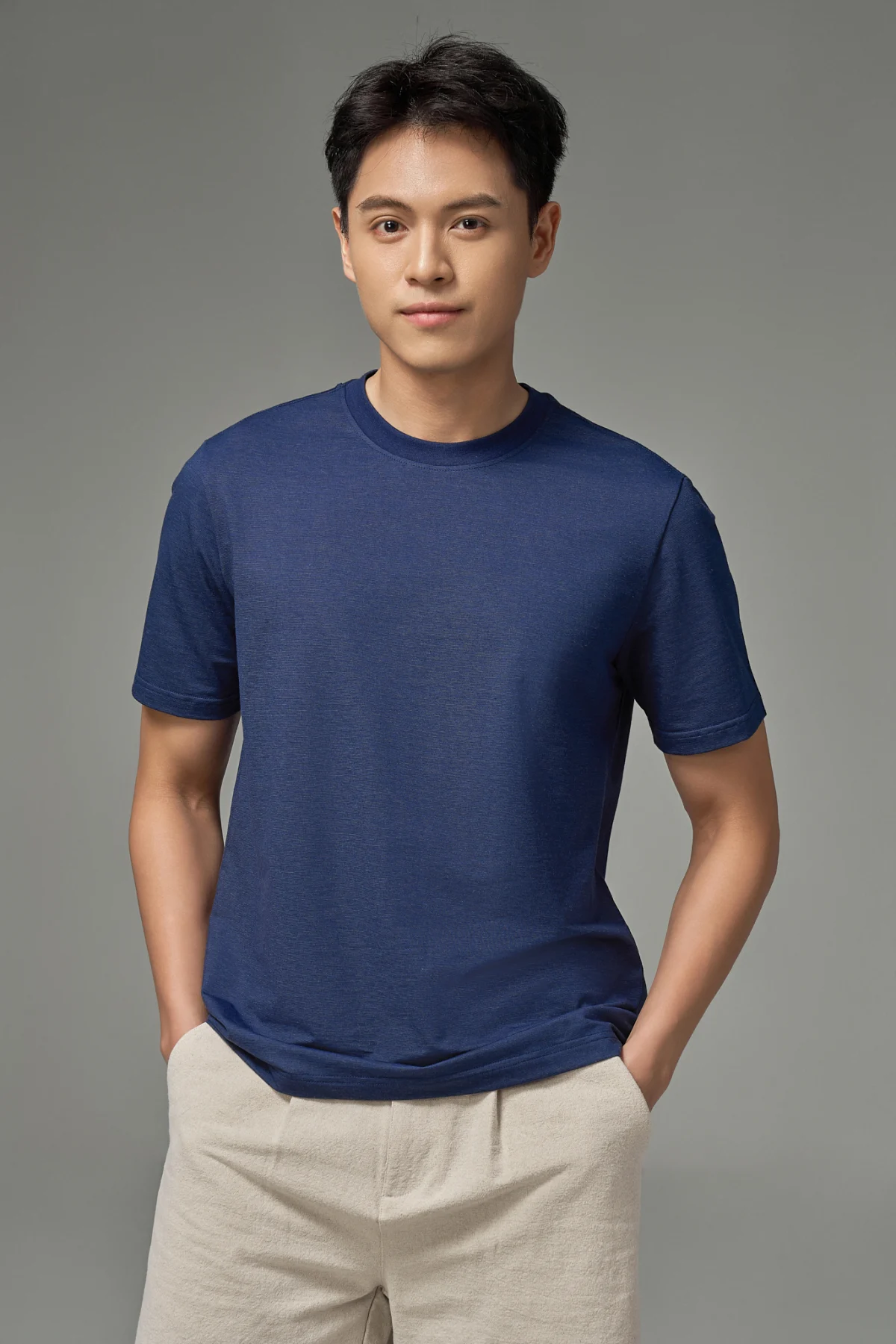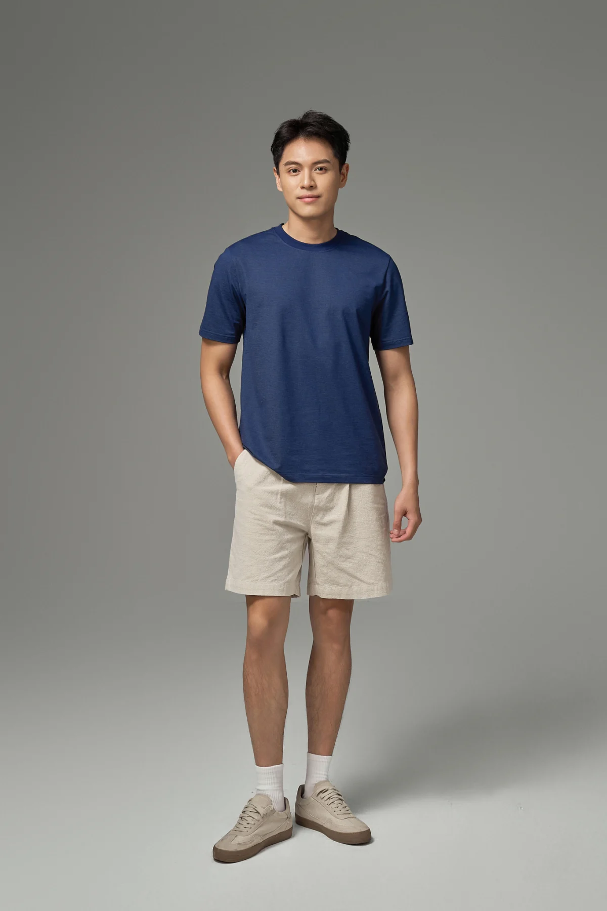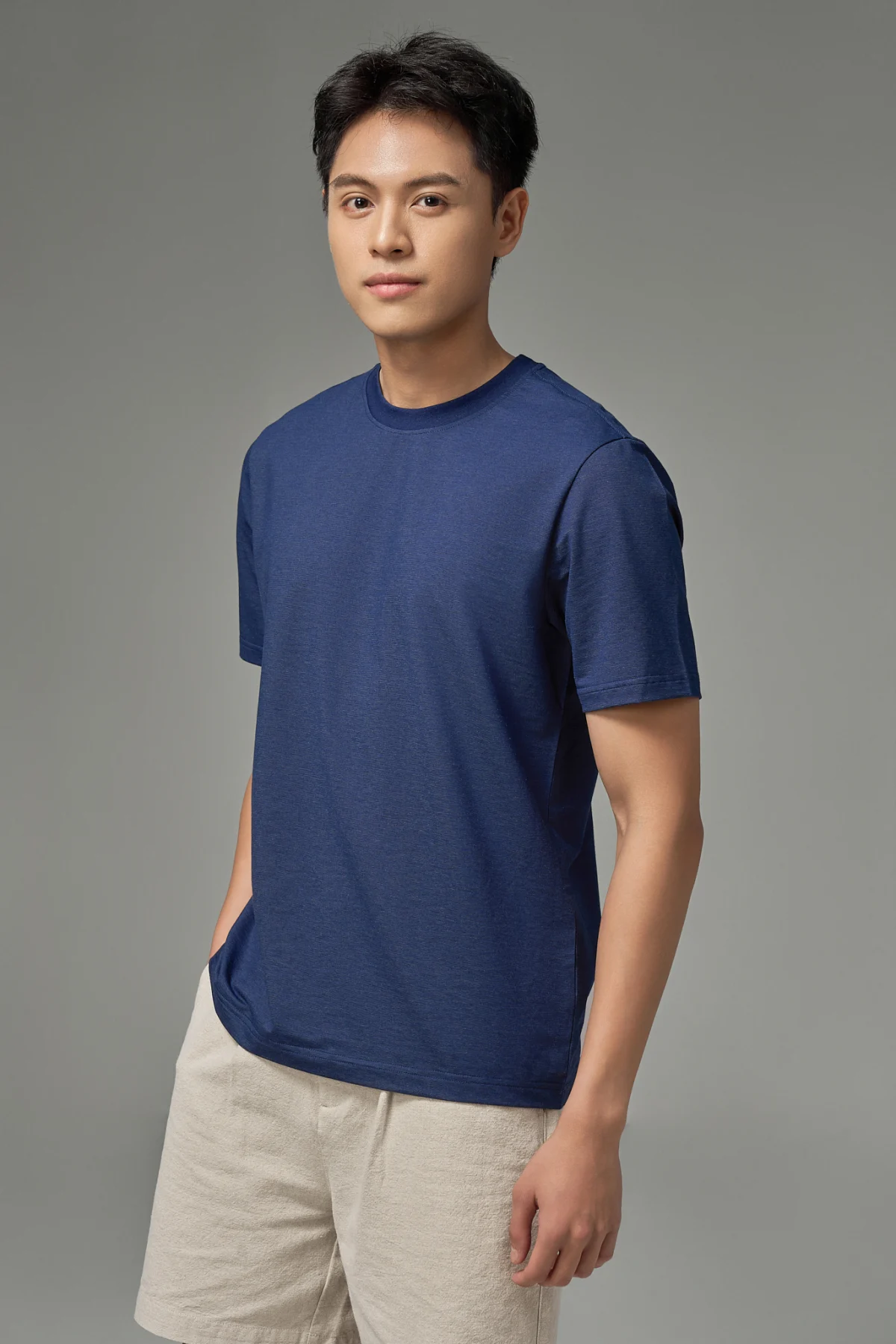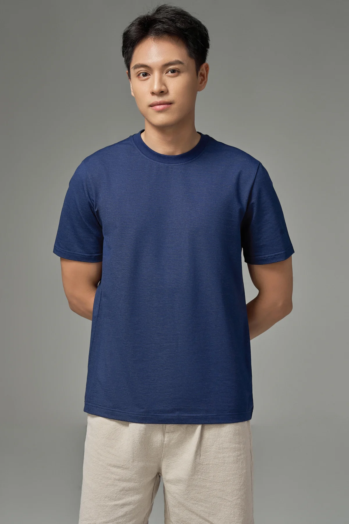 ► 45% Cotton, 28% Polyester, 15% Lyocell và 12% Spandex. Vải mềm mại, thoáng khí, bề mặt mịn mát, co giãn tốt và giữ form ổn định khi mặc.