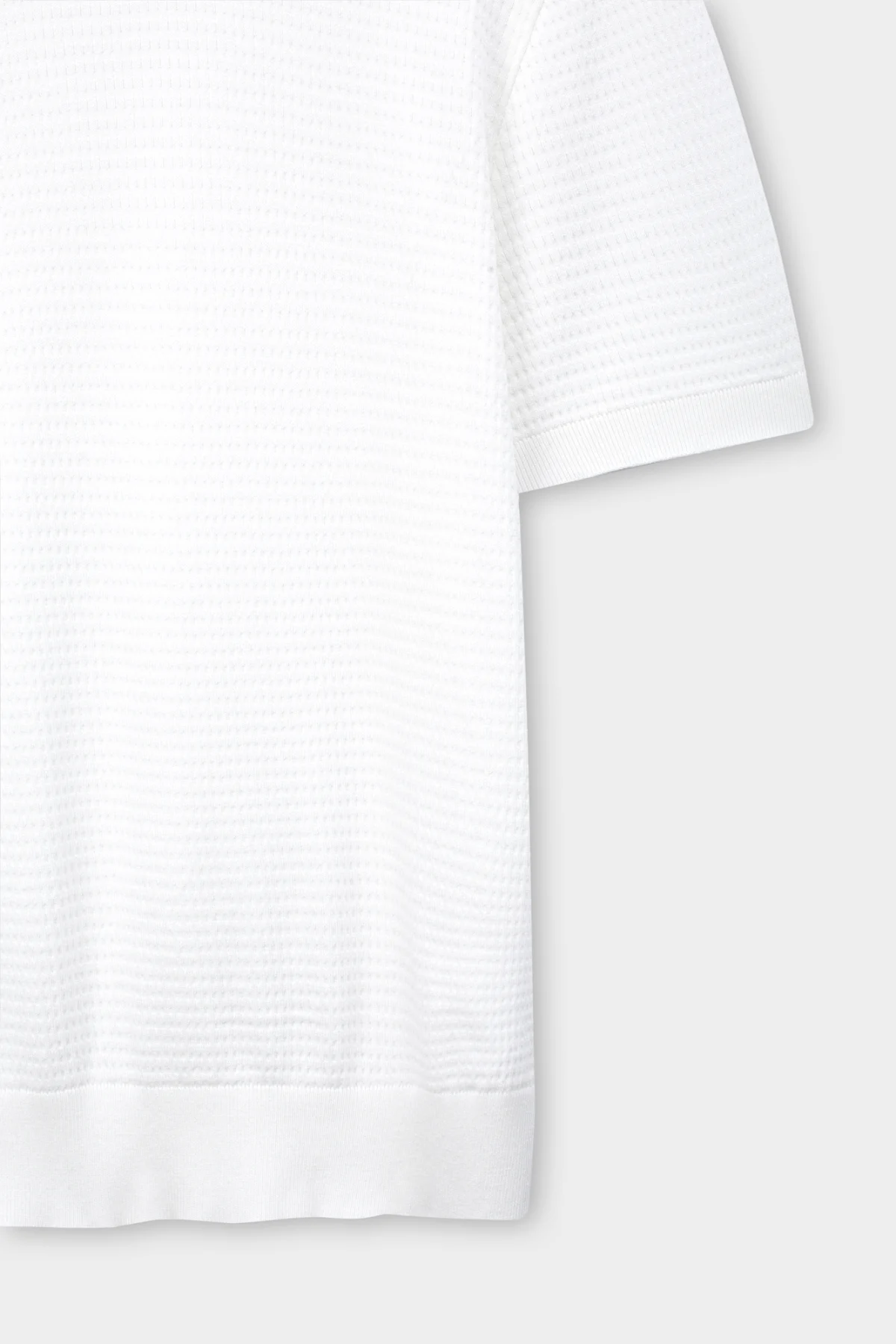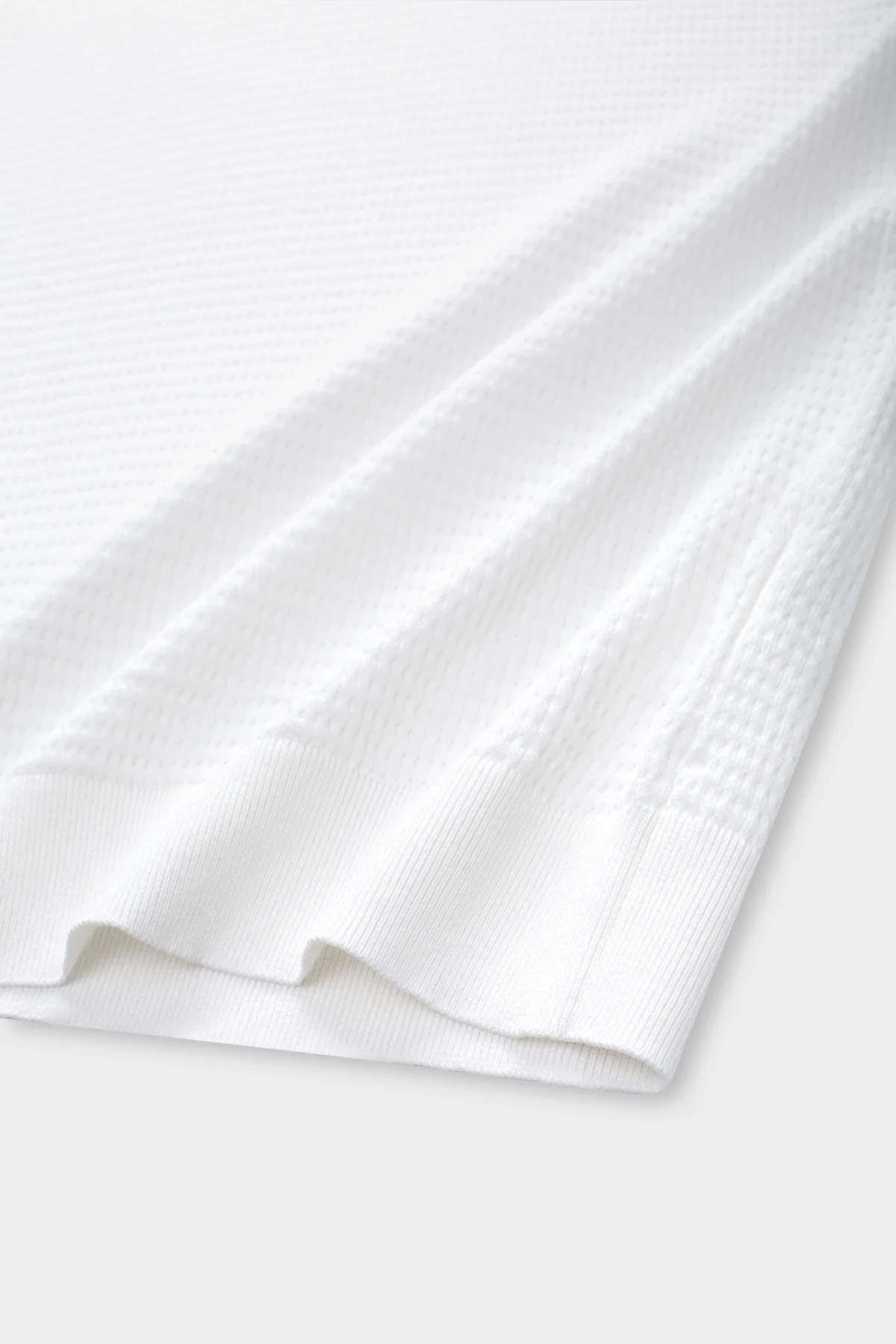 ► Bề mặt vải dệt ô vuông nổi (waffle), tạo hiệu ứng 3D nhẹ, tăng điểm nhấn cho trang phục.