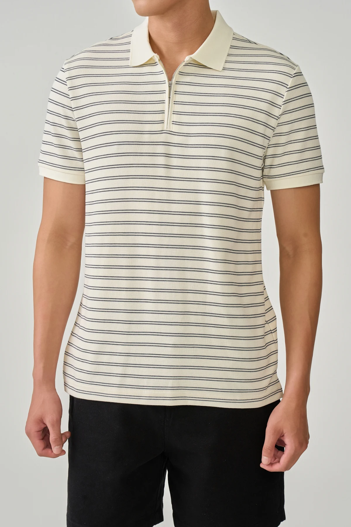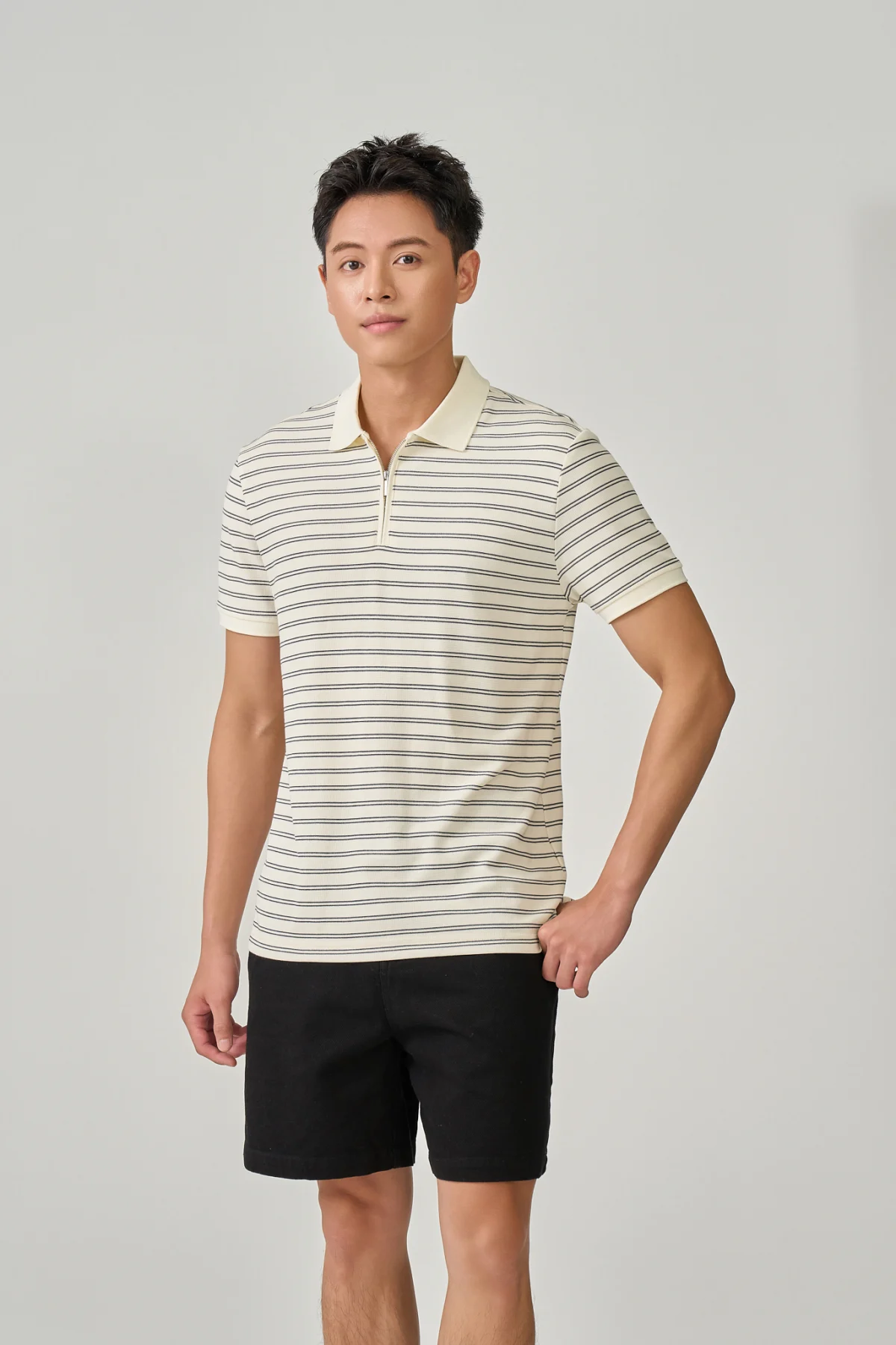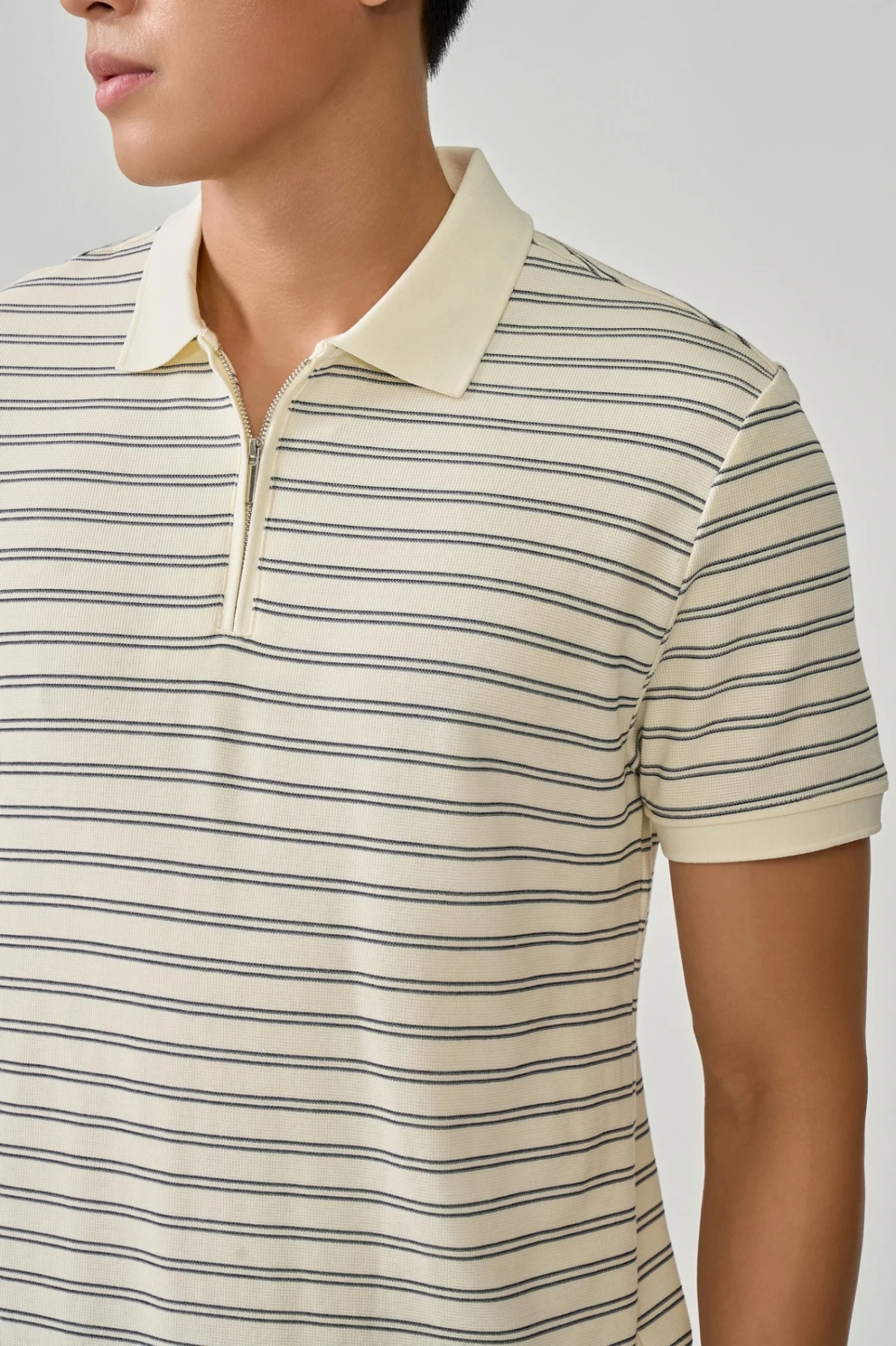 ► Thiết kế cổ kéo khóa hiện đại, trẻ trung và tiện lợi hơn so với kiểu polo truyền thống.