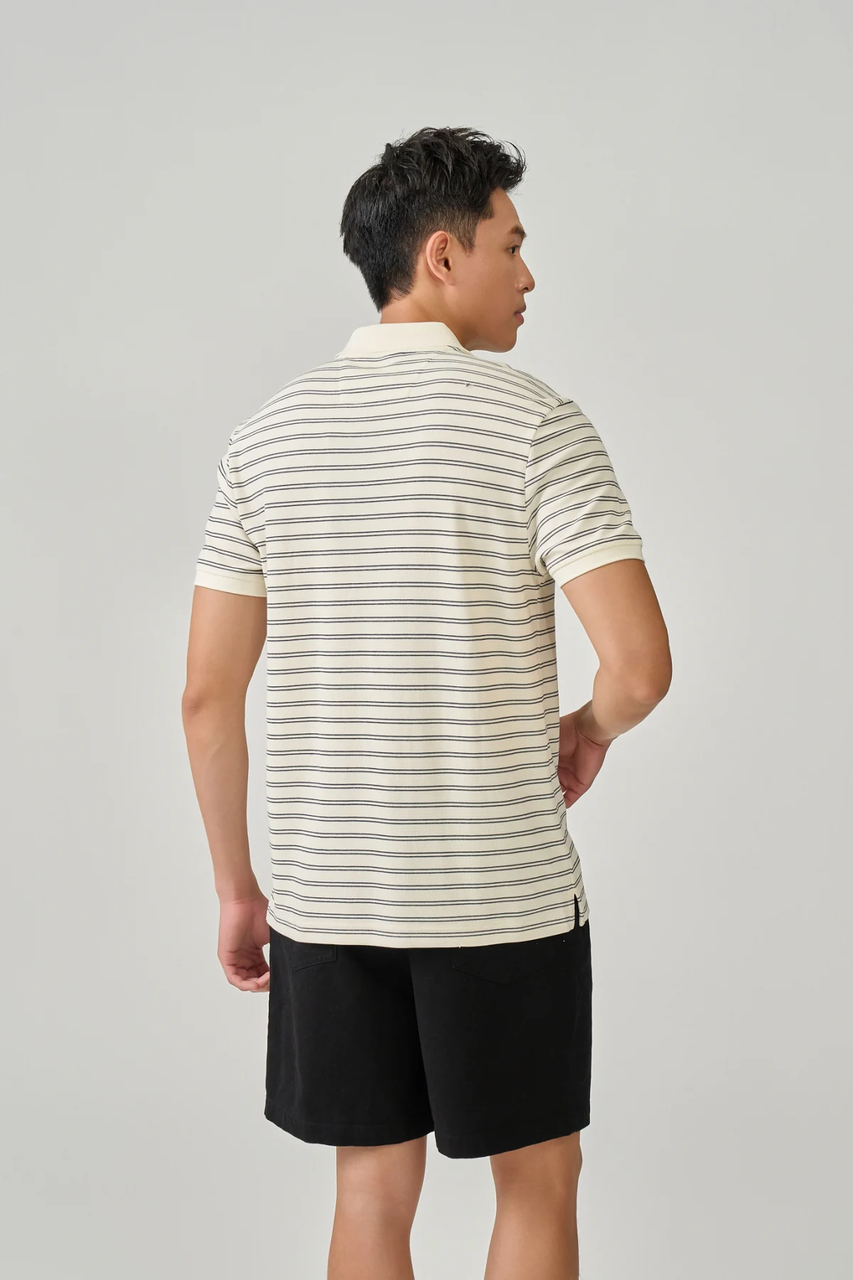 ► Họa tiết kẻ ngang đều trên thân áo, tạo cảm giác gọn gàng và nam tính.