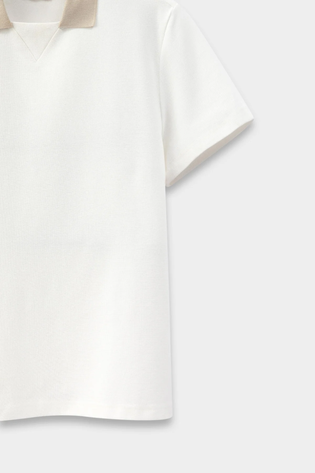 ► Mẫu áo này bắt kịp xu hướng 2025 với thiết kế cổ biến kiểu, kết hợp cùng phối màu bo cổ giúp tạo điểm nhấn và phong cách riêng biệt.