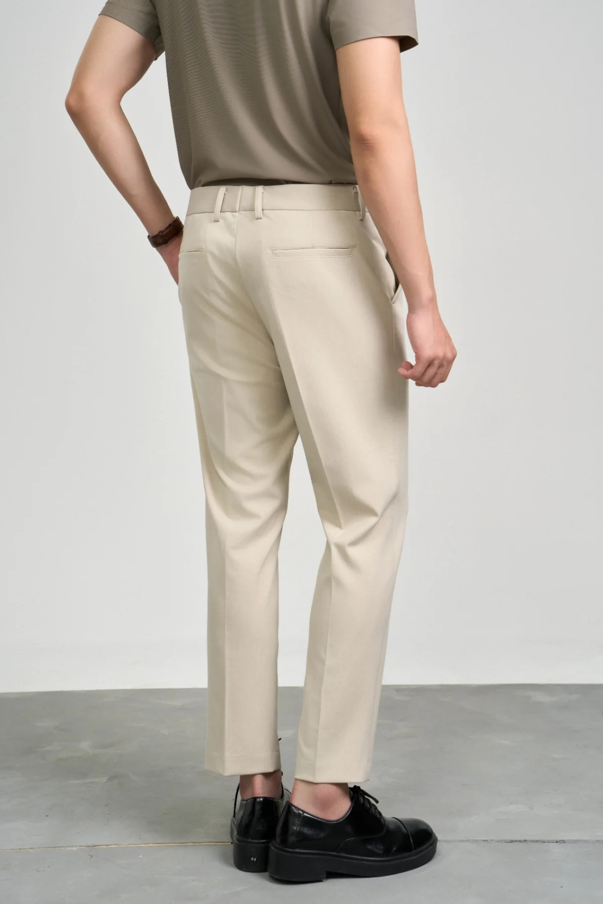 ► Điểm nhấn quần âu nam này nằm ở chi tiết chạy diễu chỉ tinh tế ở miệng túi trước – tạo cảm giác chỉn chu nhưng không cứng nhắc.