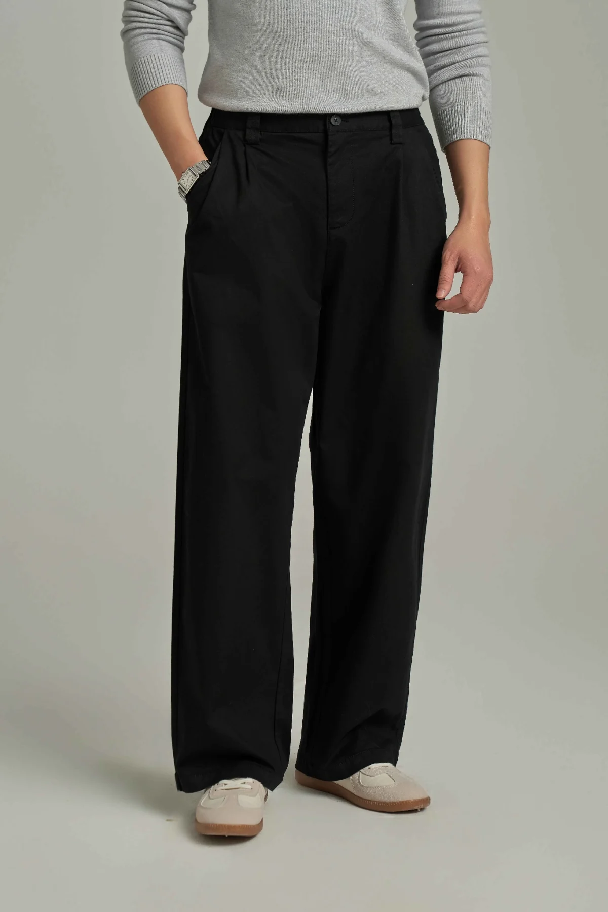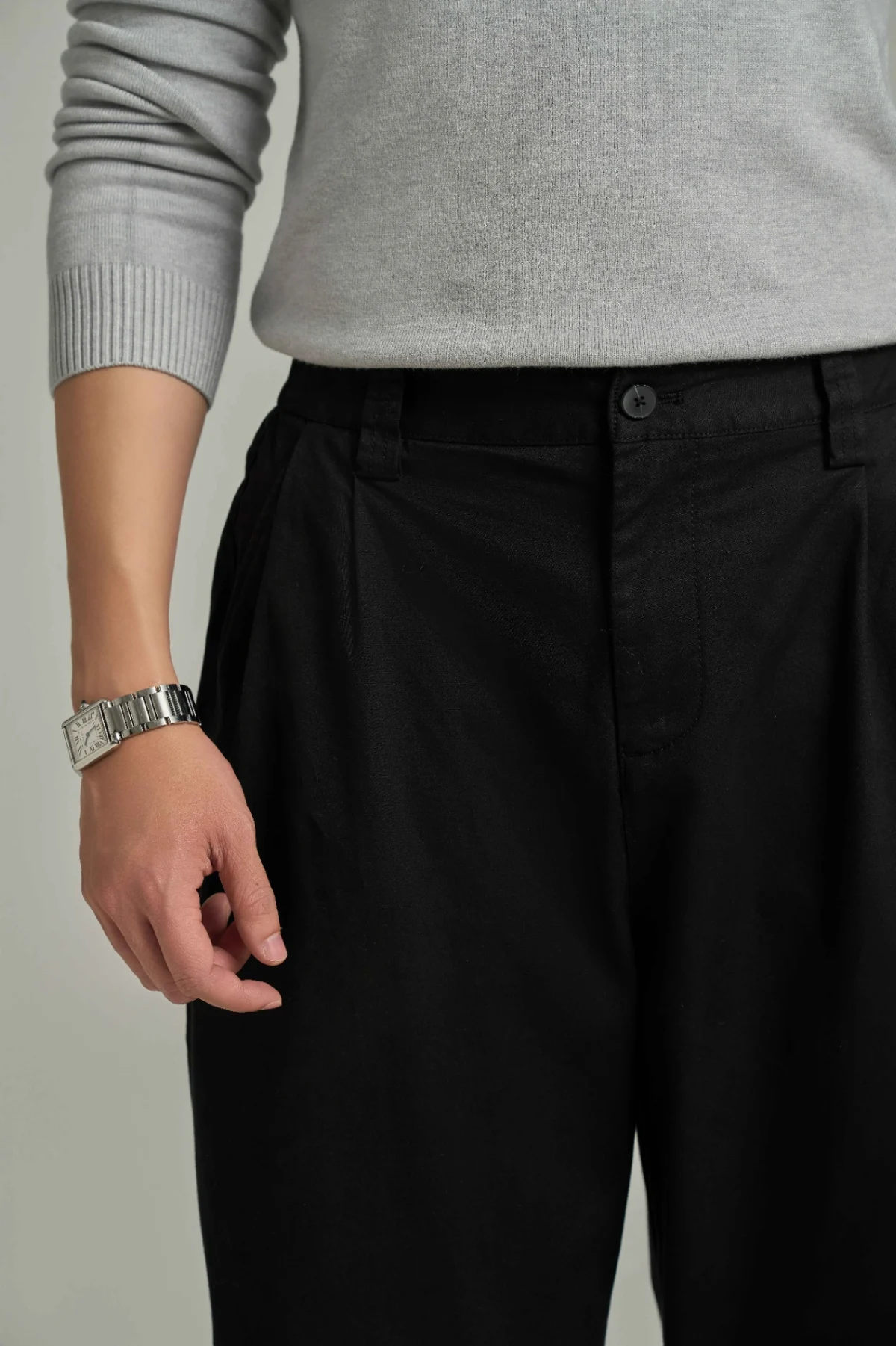 ► Form harem ống rộng, hơi cong nhẹ giúp che khuyết điểm hiệu quả, tạo vẻ ngoài phóng khoáng nhưng vẫn gọn gàng, hiện đại.